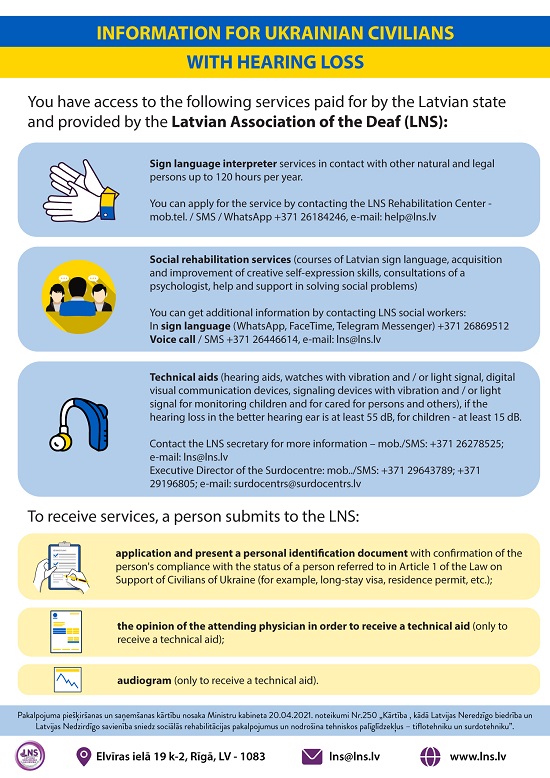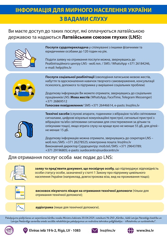 Informācija Ukrainas civiliedzīvotājiem ar dzirdes zudumu / Інформація для мирного населення України з вадами слуху / Information for Ukrainian civilians with hearing loss (video)