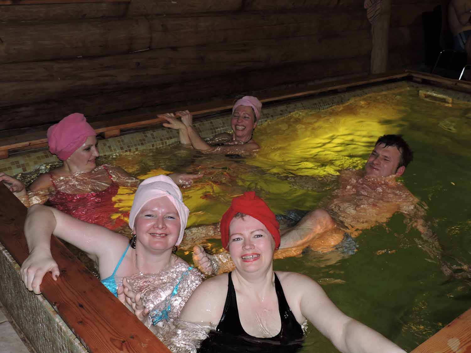 Saietā izveidojās forša kompānija, valdīja joki un smiekli līdz asarām, līksmošanās rotaļās un spēlēs, karsēšanās pirtī un jautra plunčāšanās baseinā līdz rītam.
