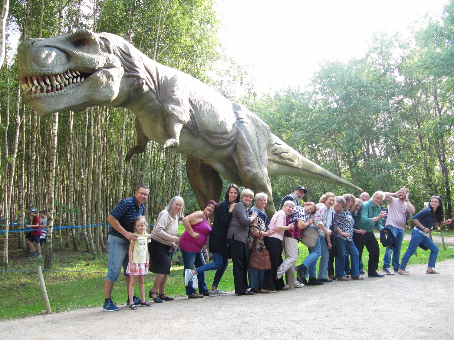 Tālāk sekoja Dinozauru parks 7 km attālumā no Klaipēdas, Radaiļos. Šajā parkā mūs sagaidīja visīstākie dinozauri, kuri kustējās, elpoja, izdvesa dažādas skaņas un sprauslāja ūdeni. Kā izrādās, tas ir vienīgais šāda veida parks Baltijas valstīs. Apmeklētājiem bija iespēja izstaigāt arī greizo spoguļu labirintu, apmeklēt 5D kinoteātri un bērniem spēlēties rotaļu laukumos un rūķīšu pilsētā.