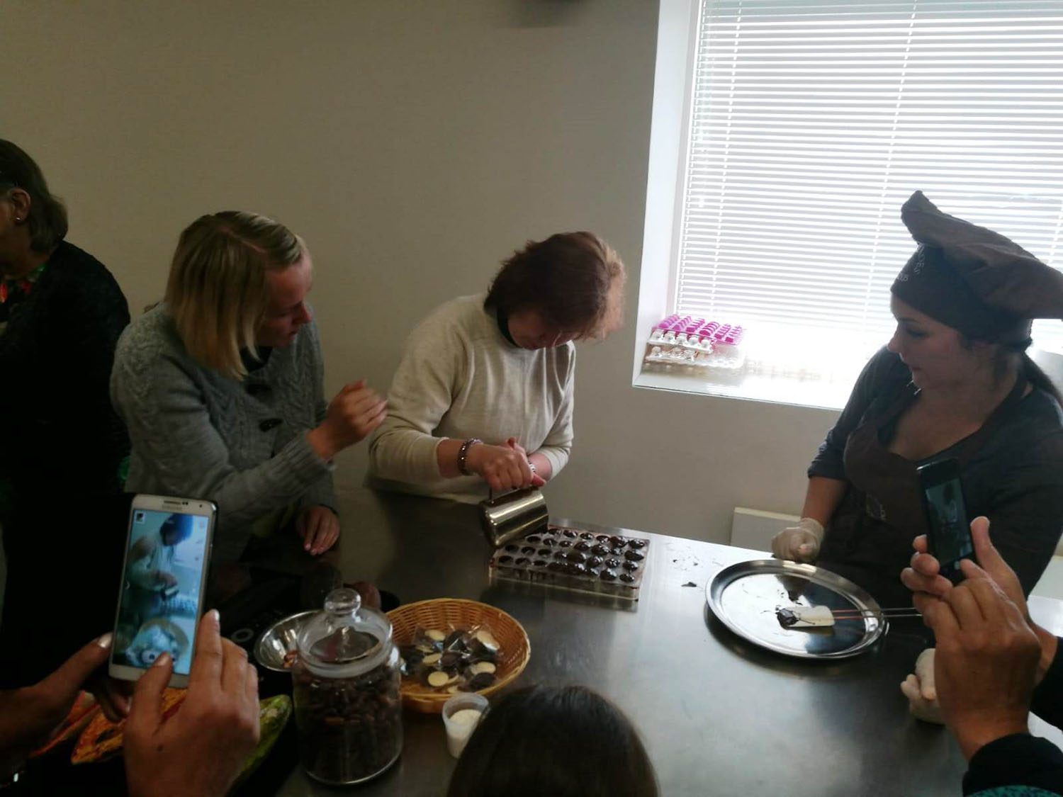 Gids mūs iepazīstināja ar muzeja vēsturi, ar šokolādes tapšanas tradīcijām, pastāstīja un parādīja saldumu izgatavošanas procesu. Vērā ņemams gida teiktais, ka šokolādes muzejs domāts visiem, kuri priecājas par dzīvi. Gida stāstīto tulkoja Gunta Birnīte.
