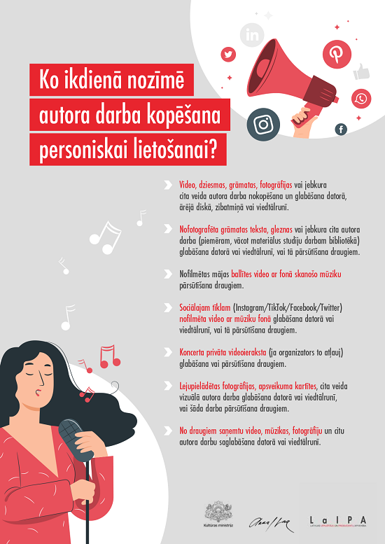 L. Zommere uzsvēra, ka šis regulējums neattiecas tikai uz mūzikas kopēšanu. “Tas attiecas arī uz filmām, grāmatām un vizuāliem darbiem (gleznām, fotogrāfijām, zīmējumiem), piemēram, filmu iekopēšanu no datora telefonā, grāmatas teksta vai gleznas nofotografēšanu un glabāšanu telefonā, kā arī šādas kopijas nosūtīšanu tuvam draugam vai radiniekam.